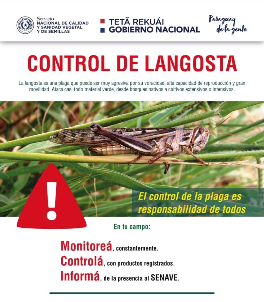 Segundo o Serviço Nacional de Qualidade e Sanidade Vegetal e de Sementes do Paraguai (Senave), o aglomerado de gafanhotos pode se movimentar para as regiões de Boquerón, na fronteira com Bolívia e Argentina, ou Alto Paraguai, na fronteira entre Brasil e Bolívia com o Paraguai.