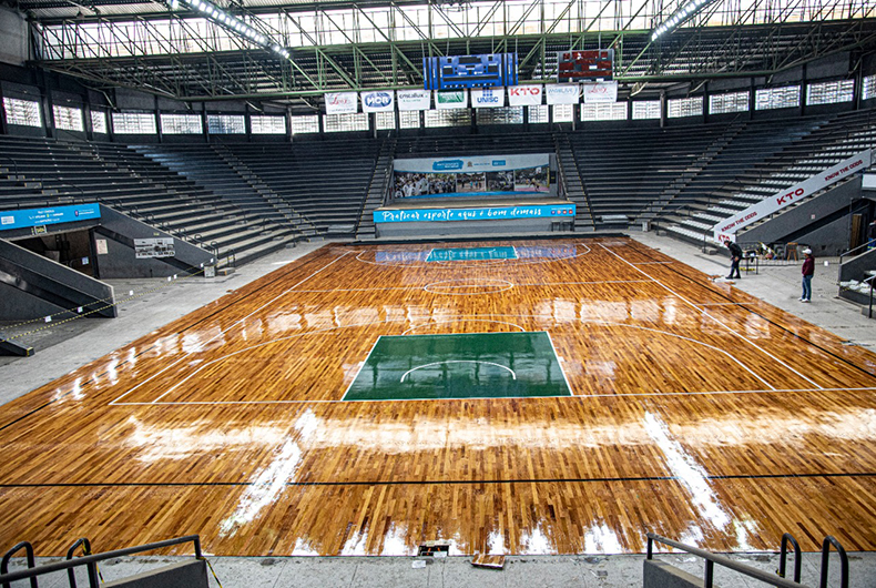 A Secretaria de Habitação, Desenvolvimento Social e Esporte já concluiu as intervenções na quadra do Ginásio Poliesportivo. A nova estrutura da quadra conta com piso flutuante, para amortecer os impactos, em uma dimensão de seis centímetros entre a superfície e o assoalho. Segundo o diretor de Esportes, Guilherme Eich, toda a parte elétrica também foi refeita, inclusive para aperfeiçoar a visualização instantânea dos painéis eletrônicos durante os jogos. O investimento total da obra é de R$ 320 mil.