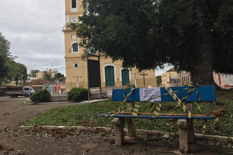 Bancos da Praça da Matriz em Rio Pardo foram isolados