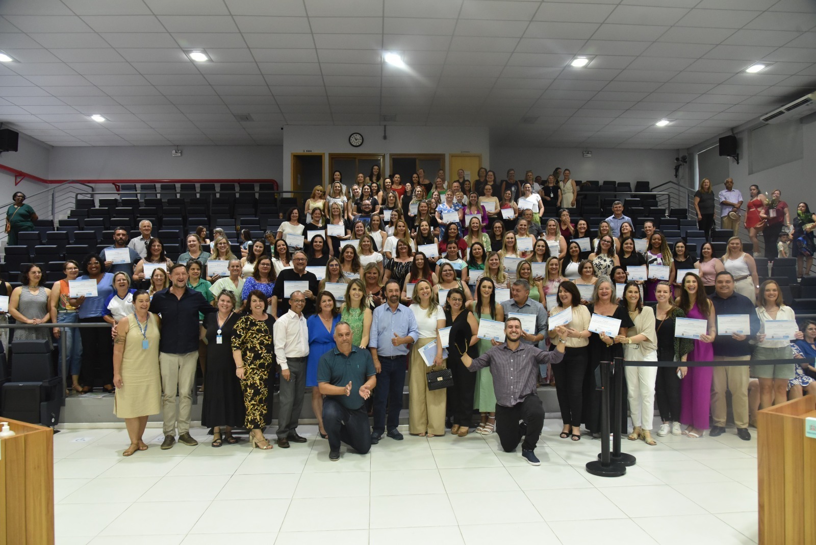 A Prefeitura de Santa Cruz do Sul formalizou a nomeação de diretores, vices e coordenadores designados no final do ano passado para a gestão das escolas municipais de educação infantil (EMEIs), de ensino fundamental (EMEFs) e do Núcleo Municipal de Educação de Jovens e Adultos (Cemeja). O evento lotou o plenário da Câmara de Vereadores na manhã dessa quinta-feira, 2.