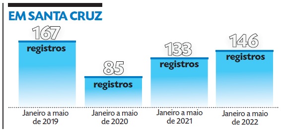 Em relação ao período de janeiro a maio de 2020, o acréscimo é ainda maior, pois aquele foi o ano mais grave da pandemia. Comparado a 2020, quando houve 85 matrimônios em cinco meses, o aumento é de 71,76%. Mesmo assim, o número de casamentos registrados de janeiro a maio deste ano ainda não supera 2019, quando foram 167.