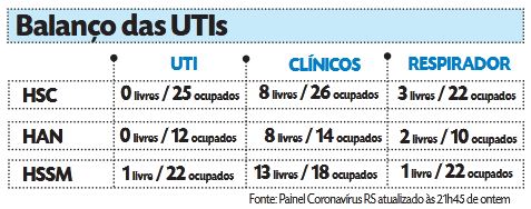 Apesar desse novo crescimento, a soma dos óbitos reduziu de 31 para 23. A situação dos hospitais segue melhorando lentamente, mas o contexto ainda é de esgotamento da capacidade, de forma que a população precisa manter os cuidados para evitar um novo colapso na rede de saúde.