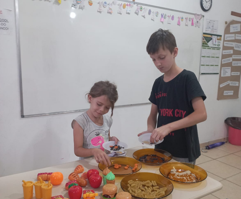 A partir da conversa com as nutricionistas, os estudantes simularam pratos saudáveis e os expuseram aos colegas. “Momento em que tiveram que considerar os grupos alimentares para a montagem do prato. Isso os fez refletir sobre qual tipo de alimento deve ser escolhido, quais contêm vitaminas, minerais e fibras, proteínas, gorduras e carboidratos a serem consumidos, para a alimentação ser considerada saudável”, observaram as profissionais.
