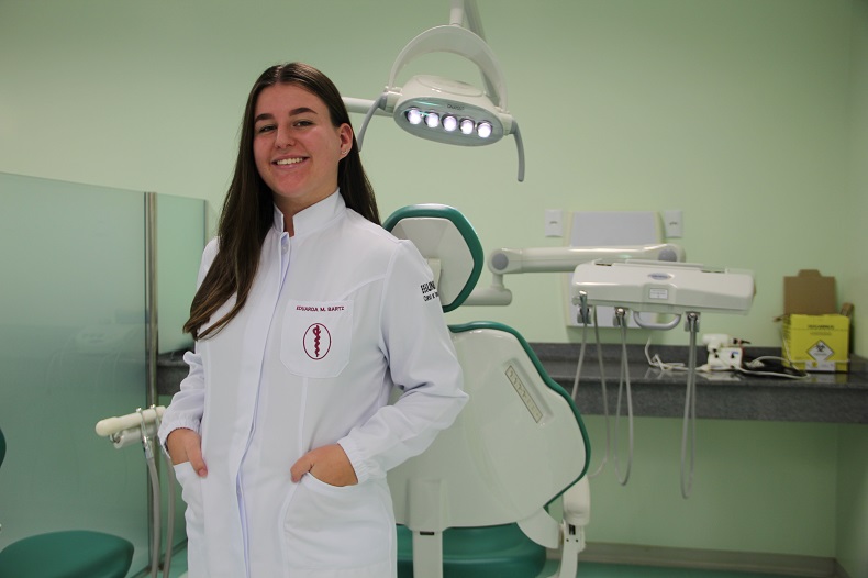 A história de Eduarda Michel Bartz, de 18 anos, com a Unisc, começou quando ela ainda tinha 4 anos de idade. Naquela época, passou a utilizar os serviços de odontologia oferecidos pela Universidade, ocasião em que teve contato com estudantes, professores e funcionários, e se apaixonou pela instituição e pela área. “Sempre fui muito tagarela e conversava com todo mundo. Também tinha muita curiosidade em saber como funcionavam os equipamentos, a finalidade deles”, contou.