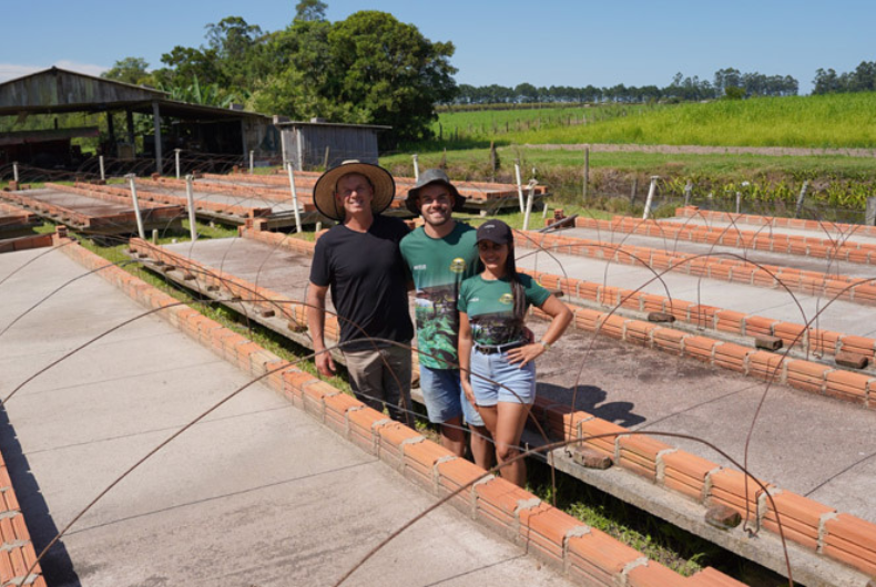 Em São João do Sul, que é conhecido como capital nacional da carroça de boi, visitamos o casal Mateus Filasco e Patrícia. Ela não atuava no setor do tabaco, mas hoje divide as tarefas com ele. E inventam muitas tecnologias na propriedade. Chamou a atenção a mecanização. Ainda existe o trabalho braçal, mas os equipamentos facilitaram os trabalhos de plantio, de colheita e de beneficiamento da safra. Desde os canteiros erguidos do chão, feitos com piso e concreto, até o sistema de paletear os fardos de tabaco, tudo facilita a mão de obra e o carregamento de peso. Mais um jovem casal que, com os pais, tem a fumicultura como base do seu dia a dia.