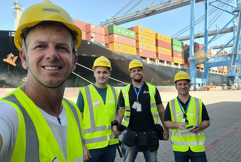 É incrível ver todo esse maquinário e caminhar ao lado de um navio cargueiro com quase 300 metros de comprimento, que carrega milhares de contêineres. Muitos deles levam o nosso tabaco para mais de cem países. Com Alan Toigo, que trabalha comigo na página Fumicultores do Brasil, e o pessoal da Gazeta (Alencar da Rosa e Marcio Souza), fizemos o registro sem o chapéu, porque lá dentro tem muitas normas de segurança. Na sequência, quando publicarmos os vídeos da viagem, fecharemos com o roteiro no porto.