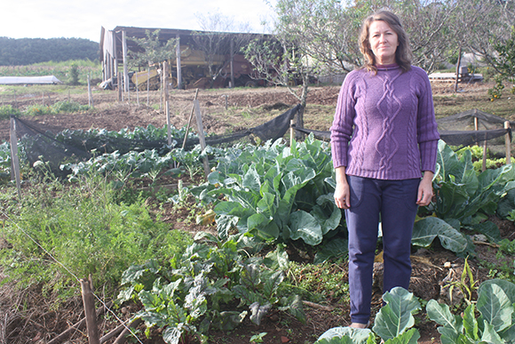 Para ela, a agricultura é algo sagrado. Afinal, é da terra que sai o sustento da família há quase 30 anos. Atualmente, são três famílias que dependem basicamente da propriedade de 23 hectares. As principais culturas são o fumo burley e a soja. Em quatro hectares, a família cultiva 60 mil pés de tabaco. A horta fica por conta de Dona Mirtes, que aproveita cada pedacinho de terra.