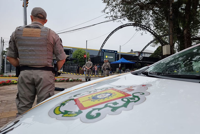 A Polícia Civil suspeita que o mesmo homem que deu carona para o autor fugir tenha levado a arma do crime. Os agentes trabalham na identificação. “Foi tudo muito rápido, por isso temos essa suspeita. Ele sobe na moto, dá uma volta na quadra e retorna armado. Outro ponto é que aparentemente ele perde o controle da pistola, pois passa a atirar repentinamente, atingindo outras pessoas e a parede de um imóvel na esquina da Marechal Floriano com a Tiradentes”, aponta a delegada Ana Luisa Aita Pippi, afirmando acreditar que a pistola tenha sido cedida pela facção criminosa.