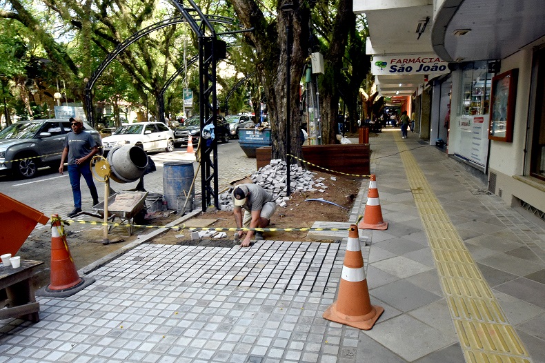 Trabalhos entre a Ramiro Barcelos e Júlio de Castilhos envolvem as calçadas, que seguem o padrão visto nos demais trechos