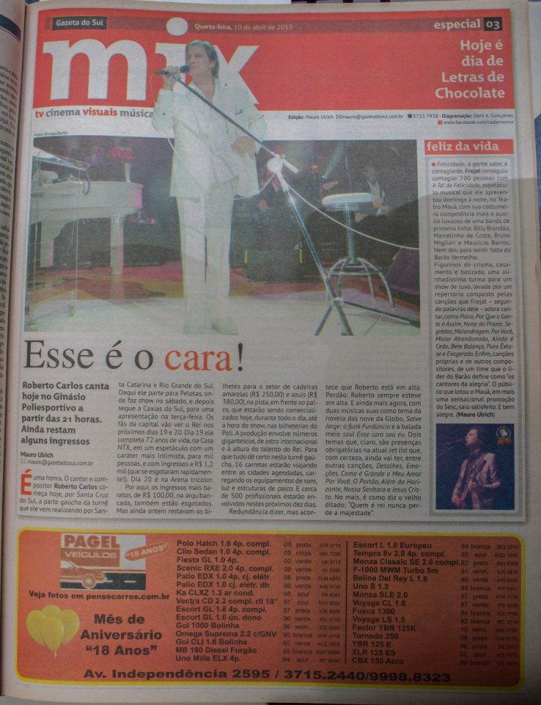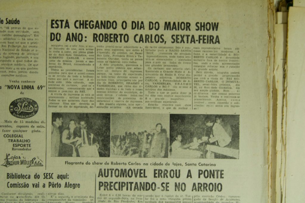 A edição de sábado ainda conseguiu repercutir o show da véspera, em breve texto na capa. “Roberto Carlos e companhia explodiram Sociedade Ginástica”, foi a chamada. “Chegaram e abafaram”, diz a matéria. “A Ginástica pegou fôgo mesmo quando o ‘Rei’ Roberto Carlos começou a cantar com aquele seu geitão inconfundível, as mais conhecidas músicas do seu repertório”, informava, com a linguagem e a grafia da época. E advertiu que no auge da apresentação algumas fãs mais fanáticas lançaram os “tradicionais gritinhos”. De Santa Cruz, RC e grupo seguiriam