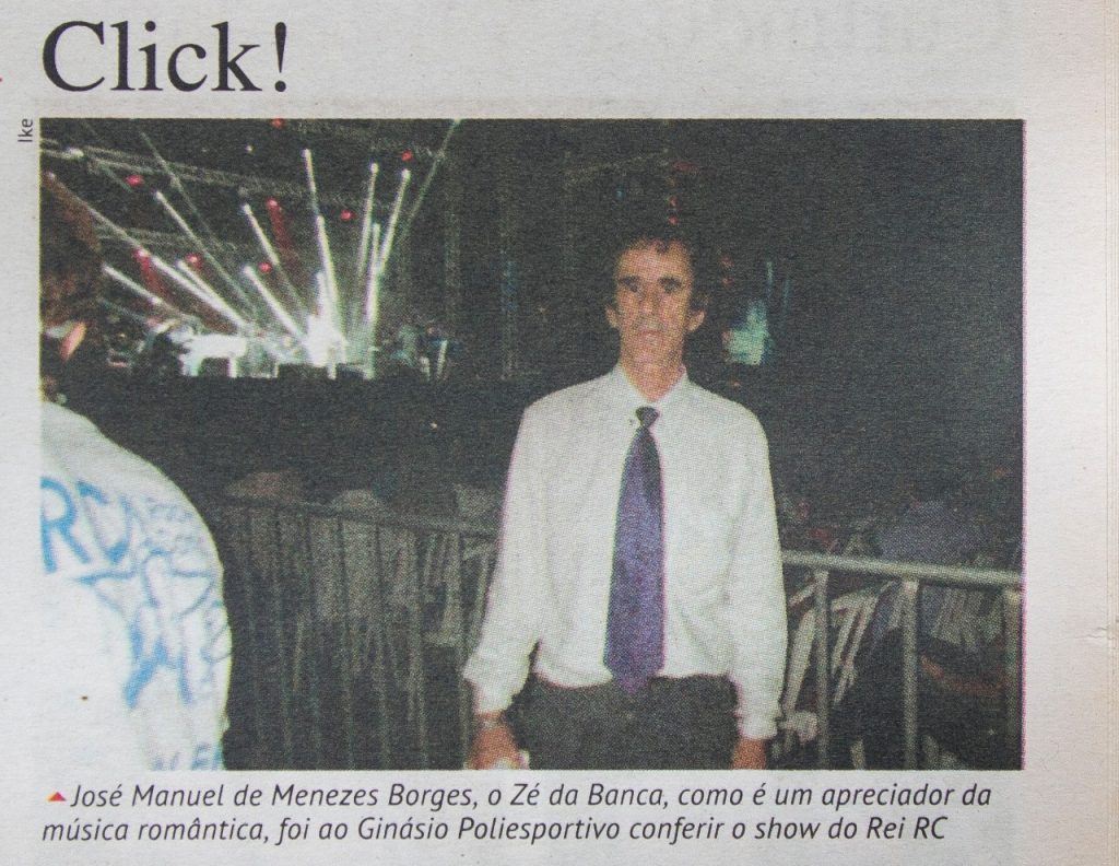 Ali se estabelecia, e dessa forma inesperada, a ligação de fã de Zé para com o ídolo da Jovem Guarda e futuro Rei da música brasileira. Sem dinheiro para ingresso, Zé achou um jeito de, na companhia de alguns amigos, assistir inclusive ao show, realizado a duas quadras do hotel, na Sociedade Ginástica. Eles escalaram um muro e a parede do lado oeste da sede do clube e, lá do alto, por uma janela que localizaram, ficaram espiando a apresentação. “A gente via o palco por trás. O Roberto e a banda estavam de costas para nós, meio de lado, mas mesmo no improviso vimos todo esse show”, refere. E desse momento em diante o Rei se fixava de tal forma no imaginário do Zé que ele inclusive se aventurou numa carreira de cantor, gravando, com apoio e auxílio de amigos músicos, discos informais com canções de Roberto, de quem ele se declara fã absoluto. “Rei é Rei!”, diz. A foto que ilustra este texto foi publicada no Jornal do Ike, da Gazeta do Sul, num registro da presença de Zé da Banca no show de Roberto Carlos em Santa Cruz em 2013.