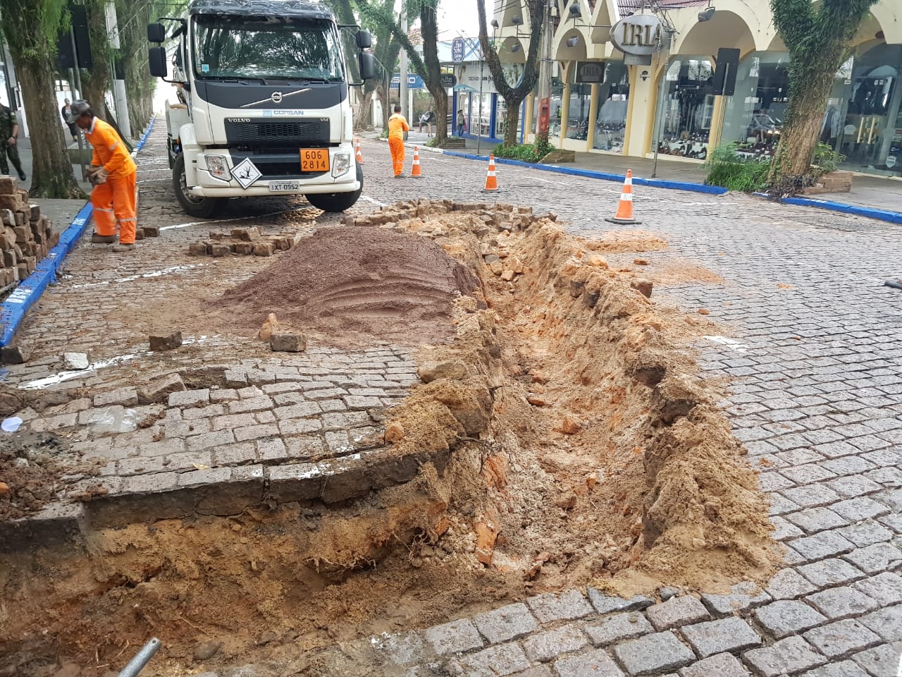 Motoristas que trafegam pela Rua Marechal Floriano, no Centro de Santa Cruz do Sul, precisam ter atenção. Uma obra da Corsan para ligação de esgoto interrompe parcialmente o trânsito na manhã desta quarta-feira, 17.