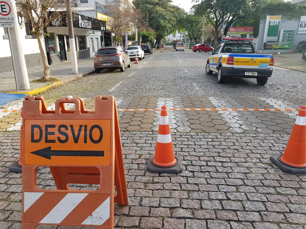 Por volta das 9 horas da manhã desta sexta-feira, 26, começaram as obras do calçadão da Marechal Floriano, em Santa Cruz do Sul. Trabalhadores iniciaram pela retirada dos paralelepípedos. Com isso, o trânsito foi bloqueado na Floriano entre as ruas Sete de Setembro e Tiradentes nesta sexta. Após esse processo, será feito o assentamento da rede de drenagem, colocação de bloquetes e o passeio público.