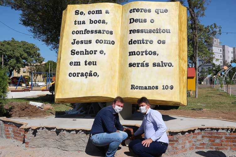 Em fase final de construção, o Monumento à Bíblia erguido na Praça Henrique Bender (Praça Evangélica), em Venâncio Aires, recebeu um ingrediente especial na quarta-feira, 22. Na obra foi anexada uma cápsula do tempo (foto). O recipiente contém diversos itens que marcam este momento e será aberto daqui a 50 anos. Entre os objetos estão reportagens e recortes sobre obras e iniciativas realizadas recentemente e em andamento no município, além de registros sobre a pandemia do novo coronavírus. Fotos tiradas no local, uma bíblia e uma máscara também foram guardados no espaço.