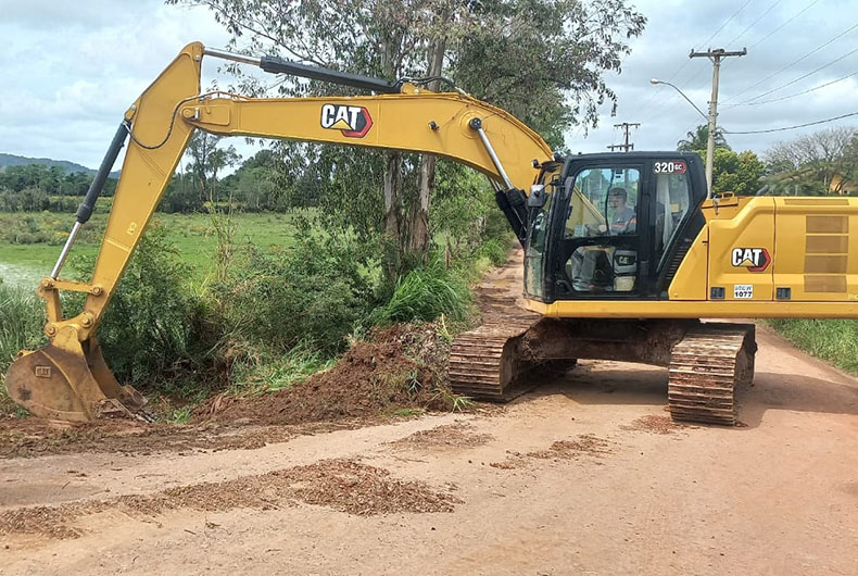 A empreitada, que está sendo executada por servidores da Subprefeitura de Linha Santa Cruz, tornou-se necessária em razão do excesso de chuva dos últimos dias. A precipitação provocou o acúmulo de sujeira nas valetas. A previsão de término do serviço é de 10 dias. Três operários estão participando da operação, que envolve o uso de escavadeira, patrola, rolo compactador, retroescavadeira e o apoio de três caminhões.