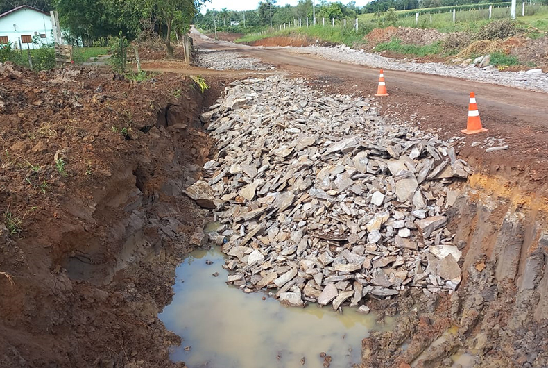 O trecho que está em obra está sinalizado e requer atenção redobrada dos motoristas. O local vai receber pavimentação asfáltica. A empresa Conpasul é a responsável pela obra.