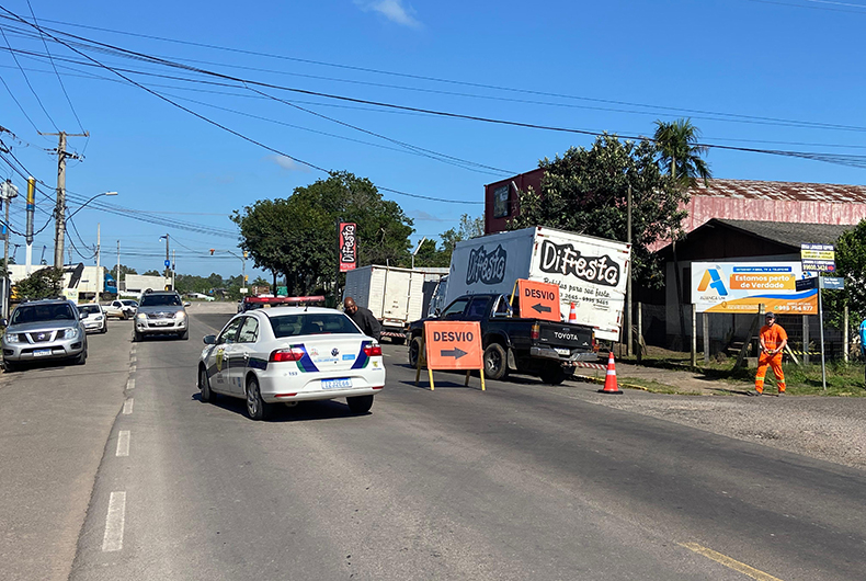 Atenção, motoristas. A partir desta segunda-feira, 6, o trânsito está interrompido no cruzamento da Rua Oscar Jost com a BR-471 para a construção de um novo trevo no local. A interdição começou por volta das 8h30. O trabalho é executado pela Avantte Engenharia e Participações Ltda., vencedora da licitação para a duplicação no Lote 2 – Trecho 1.
