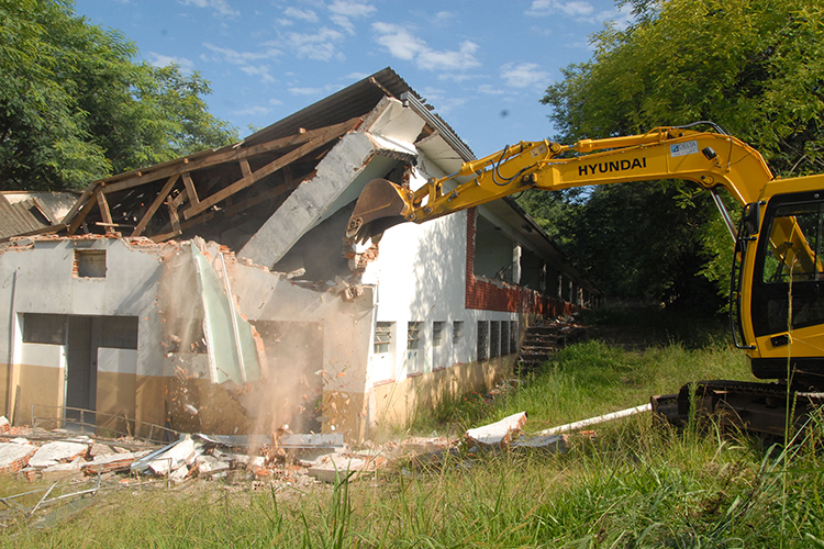 Antigo prédio da escola sucumbiu aos danos na estrutura e acabou sendo demolido há oito anos, dando lugar a salas modulares