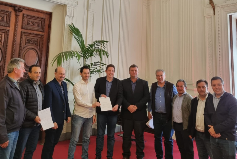 O secretário estadual da Casa Civil, Artur Lemos, e o diretor-geral do Departamento Autônomo de Estradas de Rodagem (Daer), Luciano Faustino, receberam nessa quinta-feira, 31 de março, representantes da Comissão Avante 153. Na ocasião, o grupo solicitou melhorias no trecho da rodovia entre Herveiras e Gramado Xavier. A audiência foi intermediada pelo deputado estadual Adolfo Brito (PP).