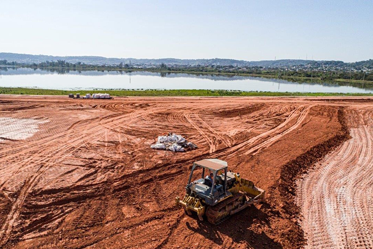 Com os últimos dias de tempo seco, as obras do complexo turístico do Lago Dourado também estão em ritmo acelerado. De acordo com o secretário de Planejamento, Orçamento e Gestão de Santa Cruz do Sul, Daniel Feuerharmel, estão em execução correções pontuais em uma extensão de três quilômetros. “Já foi executada a base. Estão sendo aplicados rachões e enleivados os taludes no entorno”, afirmou.