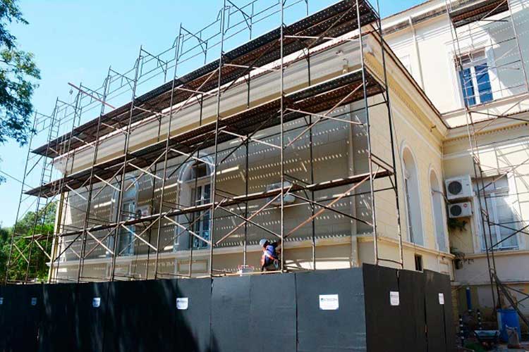 Já a revitalização externa segue sendo realizada, mas em estágio avançado. A conclusão da obra está prevista para julho. Em uma das laterais, que já passou pelos reparos e a preparação, a pintura está praticamente finalizada.