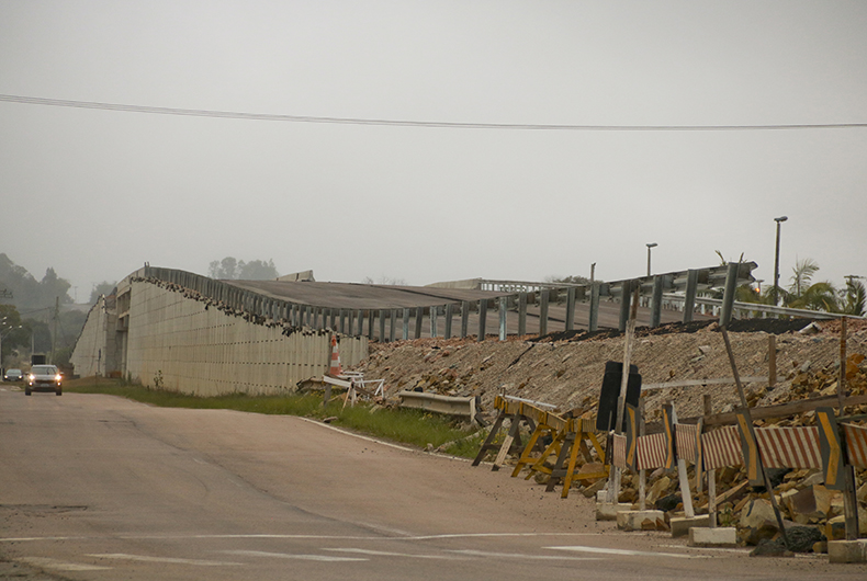 As obras no viaduto do trecho urbano da BR-290, em Pantano Grande, estão paralisadas. Porém, devem ser retomadas em breve. A empresa responsável pela vigilância do maquinário está em processo de contratação, o que indicaria a volta dos operários. Apesar disso, o Departamento Nacional de Infraestrutura de Transportes (Dnit) prefere não fixar uma data de reinício. O viaduto deveria ter sido liberado no segundo semestre de 2020, mas a pandemia atrasou o cronograma.