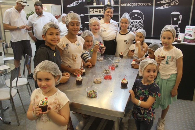 Com olhares atentos e muita vontade de colocar a mão na massa, uma turminha de dez crianças aproveitou parte do dia dedicado a elas, nesta sexta-feira, 12, para aprender novas habilidades durante a 34ª Oktoberfest. Orientados pela chef do Senac Santa Cruz, Ana Elisa Passos, os pequenos participaram de uma oficina de cupcakes.