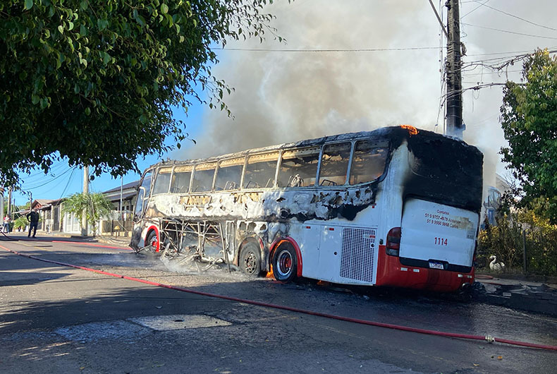 Um incêndio atingiu dois ônibus na manhã desta quarta-feira, 6, no Bairro São João. O fato aconteceu em frente a uma residência localizada na Rua José Arlindo Zimmer.