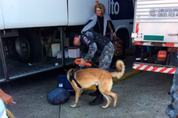 Juntamente com cães farejadores, os PMs realizaram buscas por armas, drogas e criminosos na rodoviária de Santa Cruz do Sul, por meio de abordagens, inspeção de bagagens e identificação de pessoas. Ao todo, 80 passageiros de três veículos de transporte coletivo foram fiscalizados. Não houveram prisões ou apreensões.