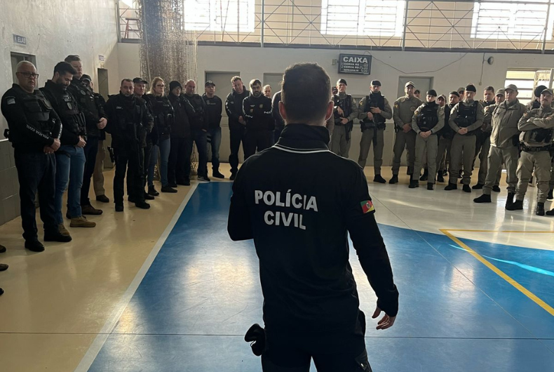 Durante a operação, foram empregados 32 policiais civis, com 12 viaturas, e 20 policiais militares, em uma ação articulada e planejada para desarticular os principais núcleos da organização criminosa.