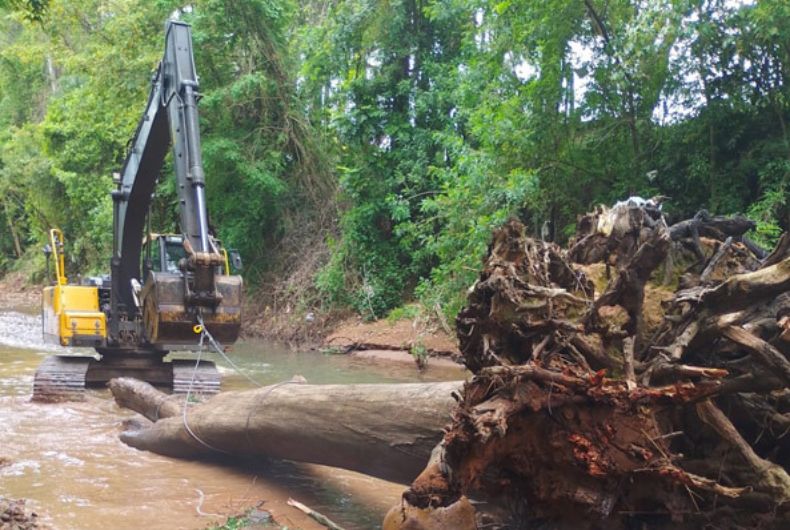 Máquinas foram usadas na retirada de árvore que estava no Arroio das Pedras