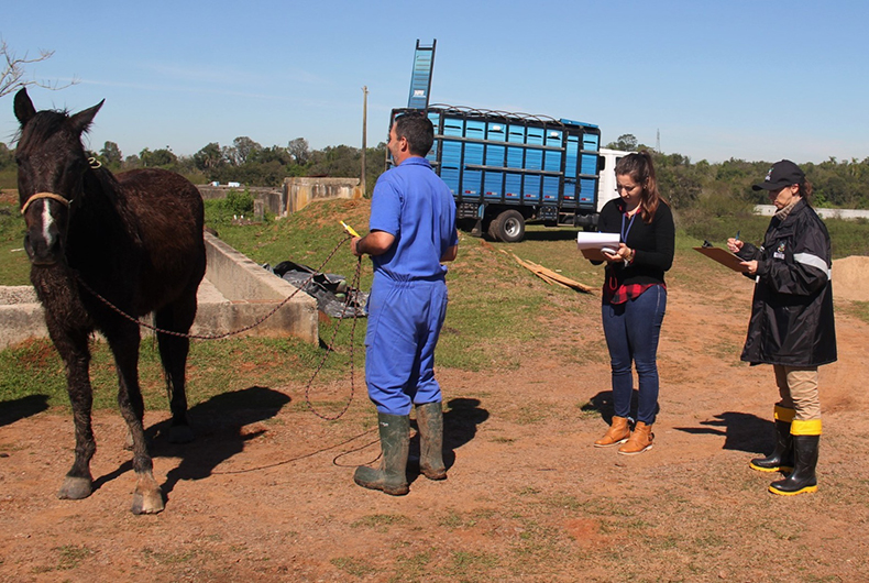 Uma operação integrada apreendeu seis equinos na Estação de Tratamento de Efluentes (ETE) Pindorama, da Corsan, na manhã da última terça-feira, 15. Participaram da ação representantes da Inspetoria de Defesa Agropecuária – RS, da Secretaria Municipal de Meio Ambiente, Saneamento e Sustentabilidade – Semass (equipes de fiscalização e do Canil Municipal), Guarda Municipal, ONG Cavalo de Lata e da própria Corsan.
