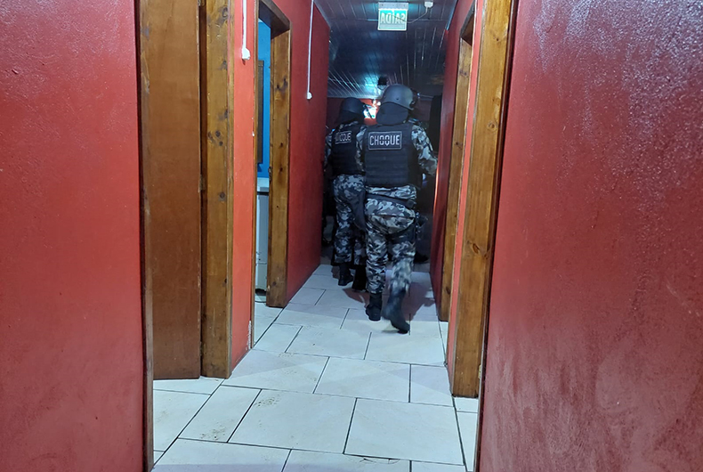 Em uma das residências alvo dos mandados de busca e apreensão, foram localizados enterrados quatro cartuchos de calibre .38 e sete cartuchos de calibre .380, além de um colete balístico. Já em uma boate, foram localizadas 62 buchas de cocaína pesando 26 gramas e R$ 495 em dinheiro. No local foi dada voz de prisão em flagrante a uma mulher de 25 anos.