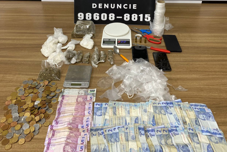 Durante o cumprimento de mandado judicial de busca e apreensão, os policiais localizaram 263,18 gramas de cocaína e 556,99 gramas de maconha, totalizando mais de 800 gramas de entorpecentes. Também foram apreendidos valores em dinheiro e munições de calibre .38.