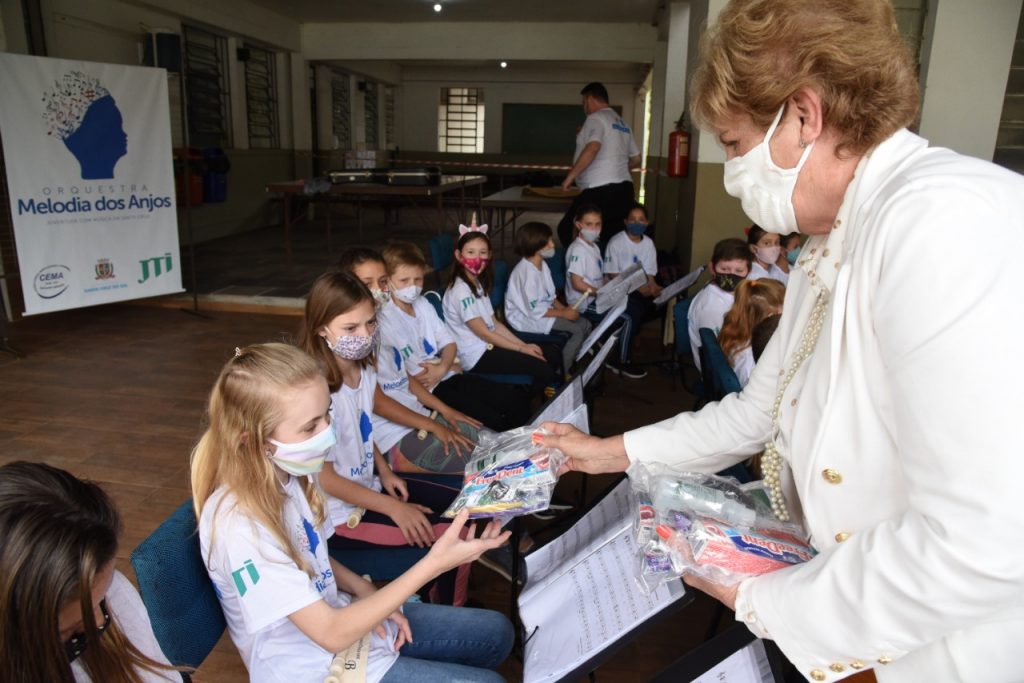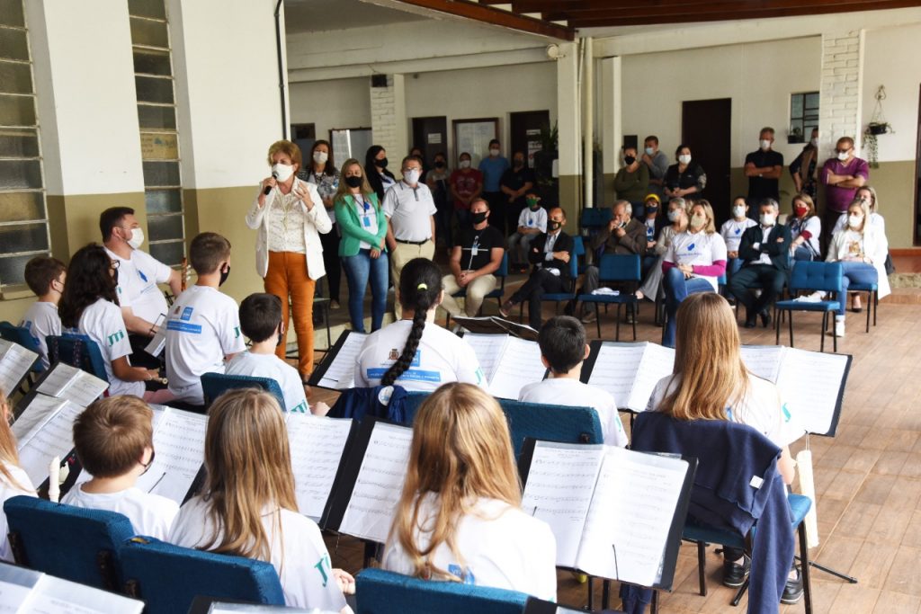 O diretor do educandário, Nelson Jandrey, valorizou a contribuição de todos os parceiros. “A escola precisa de vocês, e que bom que vocês nos ajudam a oferecer uma educação melhor para nossos alunos”, reconheceu. Os estudantes ainda aprenderão a tocar outros instrumentos, como sax, trombone, trompete, clarinete, bateria, cajon, teclado e violão. A prefeitura é parceira do projeto através das secretarias municipais de Habitação, Desenvolvimento Social e Esporte, de Educação, e de Saúde.