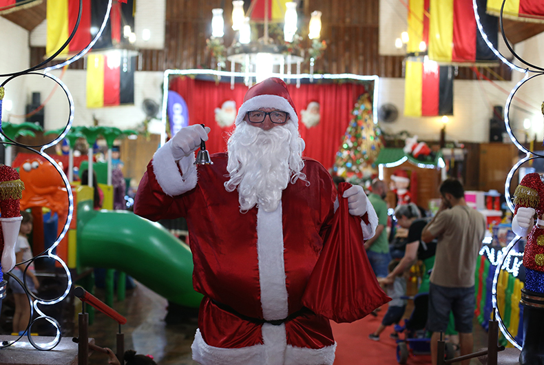 A verdade é que a noite de 24 de dezembro é a mais movimentada do Papai Noel, afinal, é o momento de eles entregarem os presentes nas residências das famílias que os contrataram. Na Casa do Noel, que durante a Christkindfest ficou no espaço do SindiTabaco, um Papai Noel de 58 anos recebe a garotada. Ele conta que trabalha na tradicional festa de Santa Cruz desde 2014.