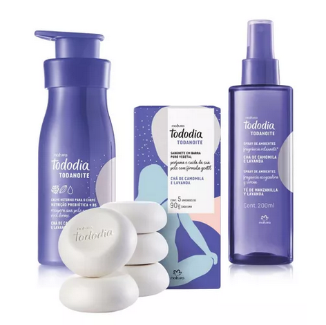A Natura lançou a linha Tododia Todanoite, com produtos que, além de cuidar da pele, melhoram em quatro vezes a qualidade do sono. A linha é para ser utilizada à noite, com uma fragrância relaxante de Chá de Camomila e Lavanda. A ideia é que o uso se torne um ritual relaxante pré-sono, desde o banho até a preparação do ambiente em que vai dormir.