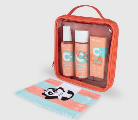 Os produtos são indicados para todos os tipos de pele e o kit com os três custa R$ 169,90. De brinde, vem uma toalha de rosto dentro de uma necessaire.