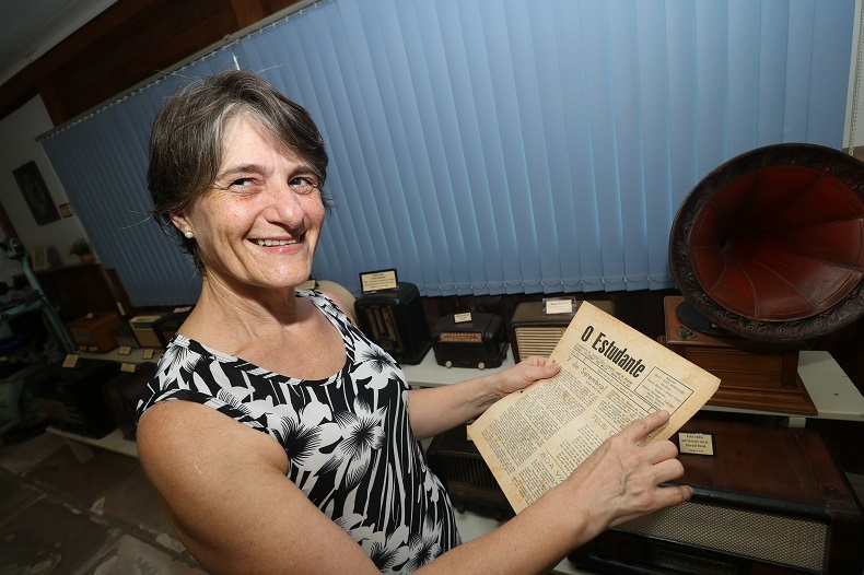 O jornal interno, no início da década de 1950, possuía edições com quatro ou oito páginas, conforme a disponibilidade de verba, do colégio ou de apoiador ou patrocinador (houve publicidade de empresas locais inclusive). Do ano de 1953, quando Lya integrava a redação, diversos exemplares chegaram ao Museu, uns oriundos dos arquivos do próprio Grêmio, outros doados. “Um dia uma senhora, de Vera Cruz, senhora Neli Grüendling, fez contato e disse que o marido dela, já falecido, que estudara no Mauá, mantinha em arquivo vários exemplares de O Estudante. Como ela sabia do carinho que ele tivera por esse material, ela queria doá-los ao Museu, como de fato fez”, frisa.