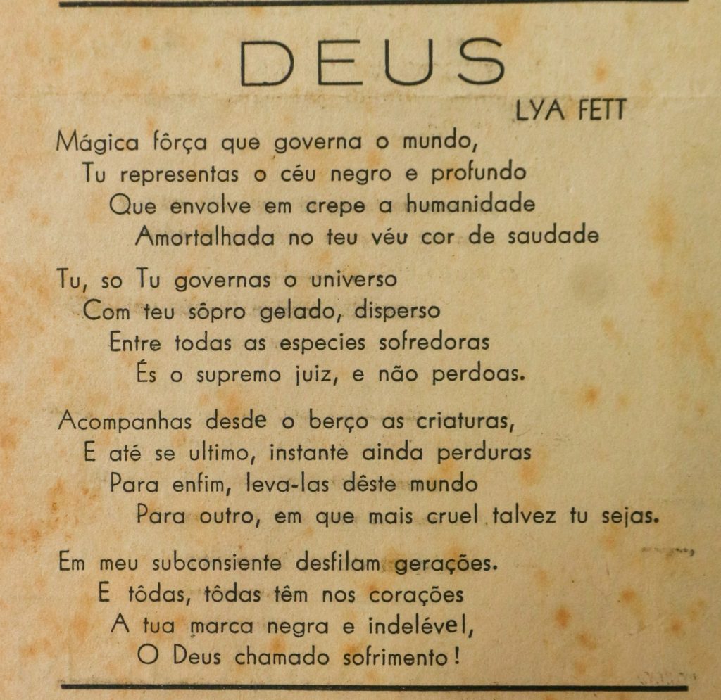 Muitos dos textos mais “densos”, de “fundo” ou de efemérides trazem justamente a assinatura de Lya. Na edição de 15 de outubro de 1953, apresenta o que chama de “1ª composição de uma série”, sobre “José do Patrocínio, o apóstolo da abolição”, e ali assina Lia, com “i”. “Descansa em paz, tu que de toda uma raça terás sempre a merecida gratidão”, fecha. Há alguns particularmente inspirados, repletos de poesia e de imagens que enternecem.
