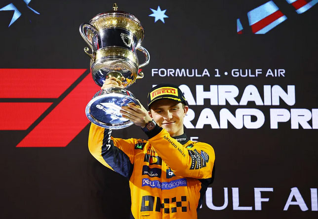 O piloto australiano Oscar Piastri, da McLaren, foi o vencedor do GP da Bahrain, realizado neste domingo, 13, no autódromo de Sakhir. O pódio foi completado pelos britânicos George Russell, da Mercedes, e o colega de equipe Lando Norris – que quase perdeu a liderança do Mundial, mas reagiu após um safety car na metade final da prova. O brasileiro Gabriel Bortoleto sofreu com o ritmo da Sauber, e chegou apenas em 19º.