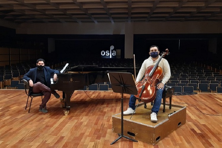 Ricardo Bahamondez (piano) e Tácio César Vieira (violoncelo) se apresentam na 12ª edição do projeto | Foto: Carol Chaves/Ascom Ospa