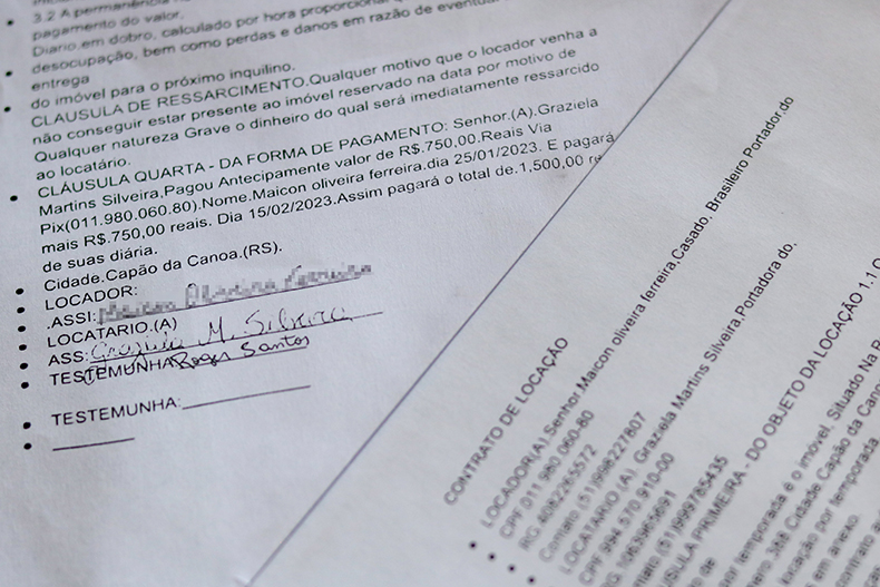A perspicácia do golpista foi tamanha que um dos pedidos para fechar o contrato foi um documento pessoal do contratante. Roger forneceu cópia de sua carteira de motorista. Com o documentos da vítima, o estelionatário acaba utilizando as informações para se passar por locador. “Tu acaba virando um laranja dele sem nem saber”, diz o morador do Bairro Pedreira.