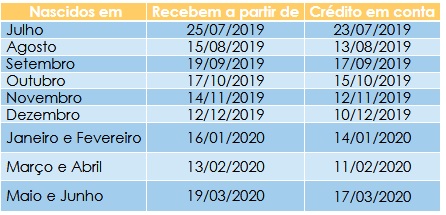 Os titulares de conta individual na Caixa com cadastro atualizado e movimentação na conta receberam o crédito automático nessa terça-feira, 14. Os pagamentos são escalonados conforme o mês de nascimento do trabalhador e tiveram início em julho, com os nascidos naquele mês. O prazo final para o saque do abono salarial do calendário de pagamentos 2019/2020 é 30 de junho de 2020.