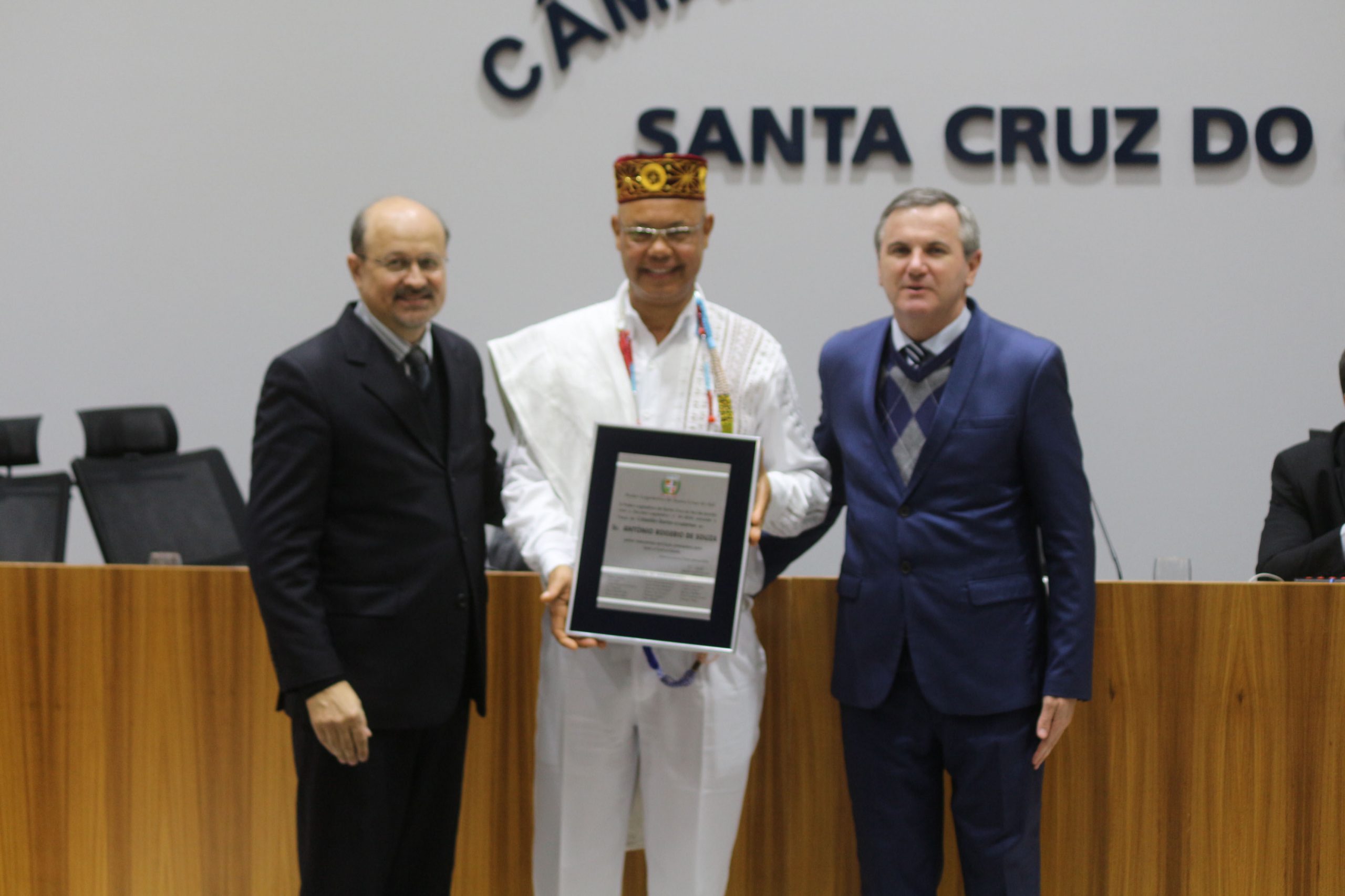 A Câmara de Vereadores de Santa Cruz do Sul realizou nesta segunda-feira, 24, uma sessão solene para a entrega do título de Cidadão Santa-cruzense a Antônio Rogério de Souza, o Pai Antônio. A sessão, proposta pelo vereador Elstor Desbessell (PTB), contou com a presença de pessoas ligadas ao homenageado, em especial, de sua obra religiosa e social.