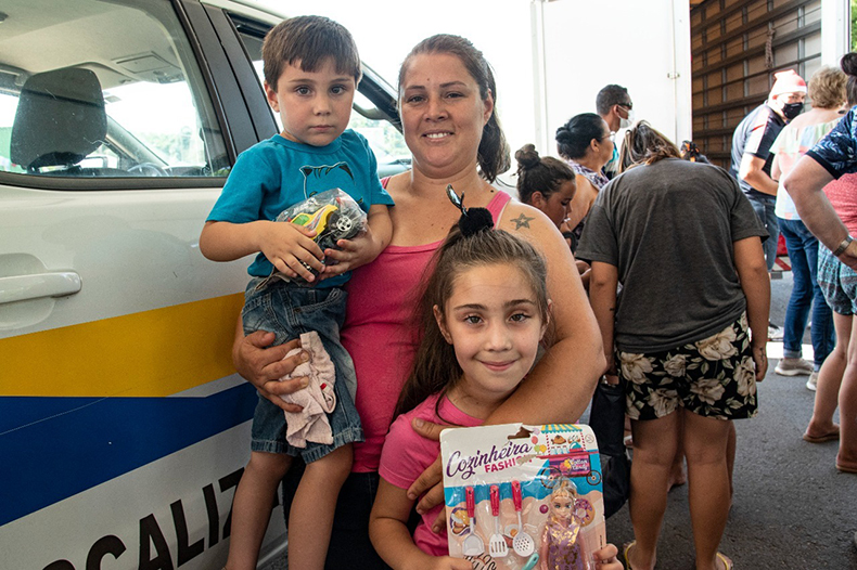 Além da distribuição dos presentes, a criançada pôde se divertir nos brinquedos infláveis e saborear picolés e cachorros-quentes.
