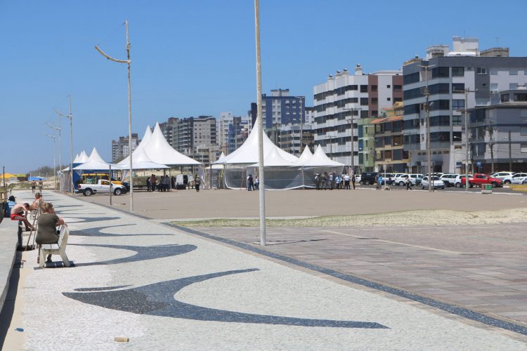 Em Capão da Canoa, a instalação padrão de quiosques, na faixa de areia, chama a atenção. Com a areia branquinha e toda a estrutura pronta, a praia que é um dos pontos mais frequentados do turismo de verão espera reunir 700 mil pessoas no réveillon. Em Capão, a virada do ano marca a chegada maciça de turistas.