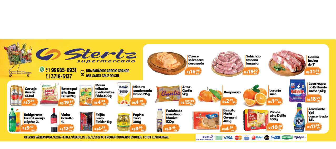 As ofertas de mercados são tradicionais na Gazeta do Sul. Como vitrine e canal de ofertas, a Gazeta oportuniza aos clientes ter em mãos os melhores preços da cidade. E, para enriquecer pesquisas de produtos e resultado ainda melhor a usuários e parceiros, nos anúncios, o leitor tem acesso direto com link ao site do anunciante, onde poderá verificar mais detalhes sobre os itens. Confira: