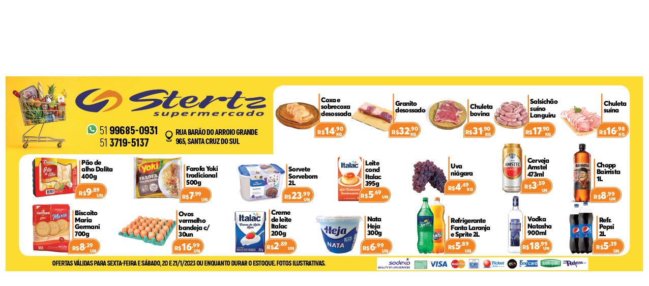 As ofertas de mercados são tradicionais na Gazeta do Sul. Como vitrine e canal de ofertas, a Gazeta oportuniza aos clientes ter em mãos os melhores preços da cidade. E, para enriquecer pesquisas de produtos e resultado ainda melhor a usuários e parceiros, nos anúncios, o leitor tem acesso direto com link ao site do anunciante, onde poderá verificar mais detalhes sobre os itens. Confira: