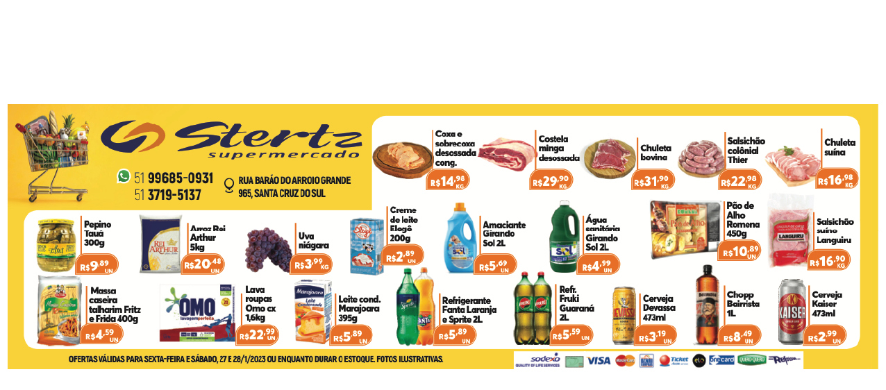 As ofertas de mercados são tradicionais na Gazeta do Sul. Como vitrine e canal de ofertas, a Gazeta oportuniza aos clientes ter em mãos os melhores preços da cidade. E, para enriquecer pesquisas de produtos e resultado ainda melhor a usuários e parceiros, nos anúncios, o leitor tem acesso direto com link ao site do anunciante, onde poderá verificar mais detalhes sobre os itens. Confira:
